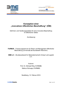 Das Forschungszentrum für Recht und Management öffentlicher Beschaffung (FoRMöB) der Universität der Bundeswehr München hat zusammen mit dem Bundesverband Materialwirtschaft, Einkauf und Logistik e.V. (BME) ein Grundlagendokument zum Thema der innovativen öffentlichen Beschaffung (IÖB) erstellt. Dieses kann auch als Fundament für die Ansätze und Handlungen von KOINNO angesehen werden.
